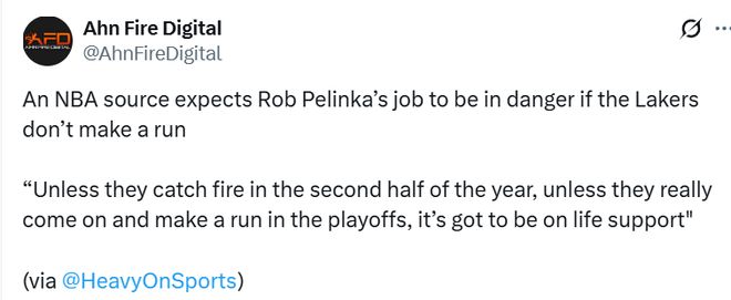 美媒Heavy報道稱,一位NBA消息源稱:“除非湖人下半程突然爆發、在季后賽打出一番成績,否則佩林卡的位置岌岌可危,很難繼續留任。擁有詹姆斯和東契奇,今年還要打附加賽的話,已經沒什么借口可找。佩林卡在聯盟里還有威信嗎?他有清晰的建隊藍圖嗎?這才是問題所在。”